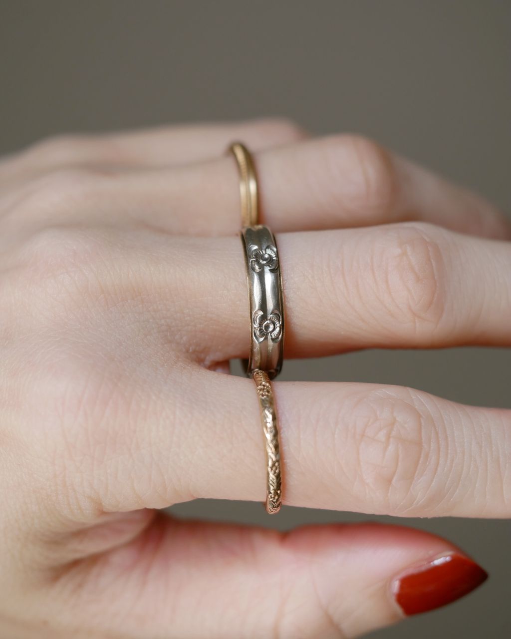 - ※ 建議參考平常合手戒指的內圍直徑作依據,一般來說寬版戒會比平常線戒要拿大半號~1號,而夏天手指會比冬天腫,慣用手指也會比非慣用手指粗,若骨節較粗的朋友,也請將此因素作為挑選尺寸時的考慮要素