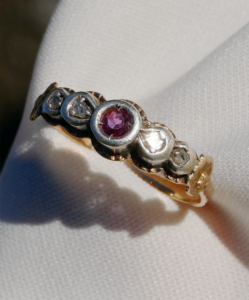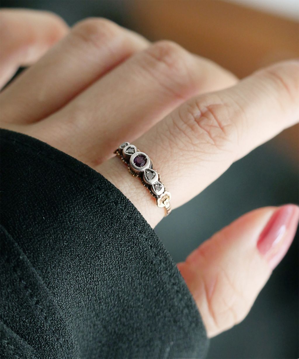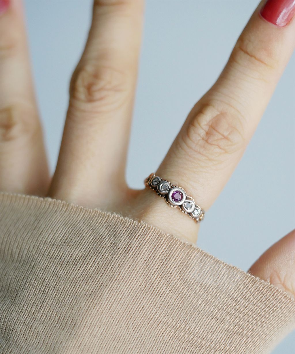 - 由於當時都是以手工切割寶石,因此切割面或形狀都各有所異,且不如現代般精細,反而更顯原礦美感,而大多數的珠寶設計都是循石設計