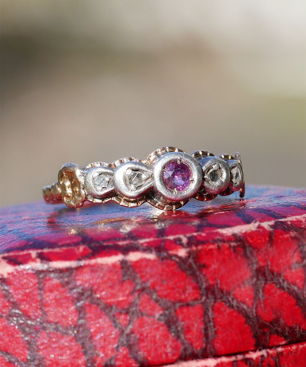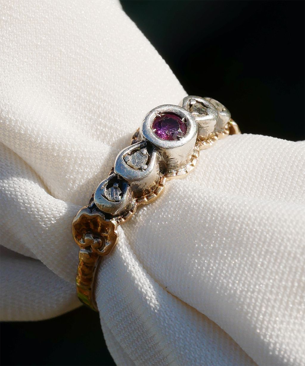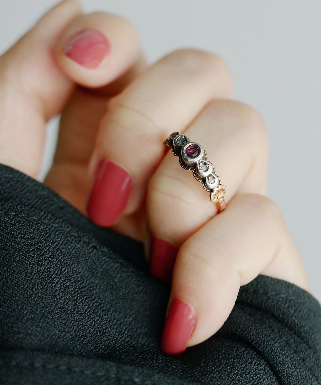 - 由於當時都是以手工切割寶石,因此切割面或形狀都各有所異,且不如現代般精細,反而更顯原礦美感,而大多數的珠寶設計都是循石設計