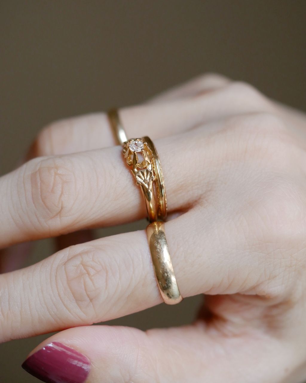 - ※ 建議參考平常合手戒指的內圍直徑作依據,一般來說寬版戒會比平常線戒要拿大半號~1號,而夏天手指會比冬天腫,慣用手指也會比非慣用手指粗,若骨節較粗的朋友,也請將此因素作為挑選尺寸時的考慮要素