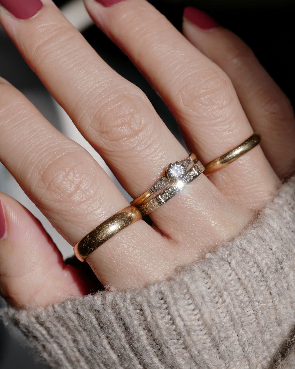 • 建議參考平常合手戒指的內圍直徑作依據,一般來說寬版戒會比平常線戒要拿大半號~1號,而夏天手指會比冬天腫,慣用手指也會比非慣用手指粗,若骨節較粗的朋友,也請將此因素作為挑選尺寸時的考慮要素