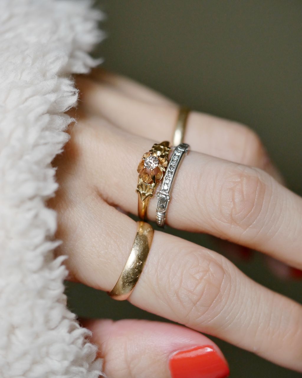 - ※ 建議參考平常合手戒指的內圍直徑作依據,一般來說寬版戒會比平常線戒要拿大半號~1號,而夏天手指會比冬天腫,慣用手指也會比非慣用手指粗,若骨節較粗的朋友,也請將此因素作為挑選尺寸時的考慮要素