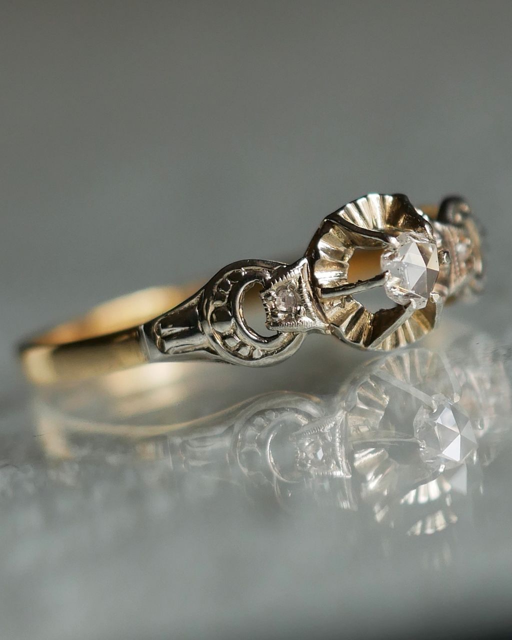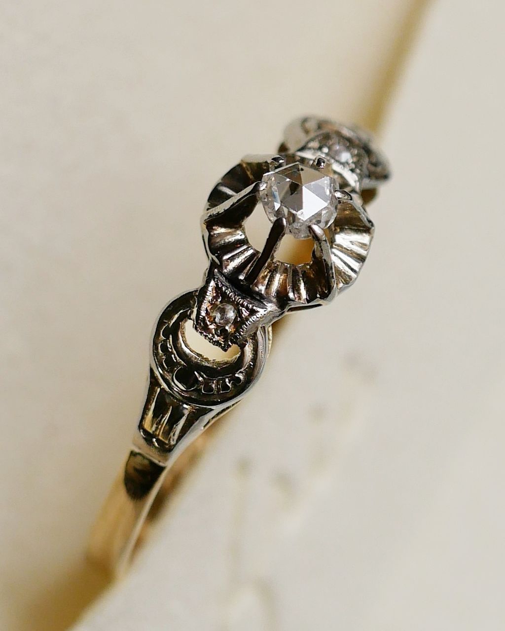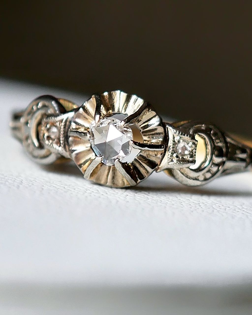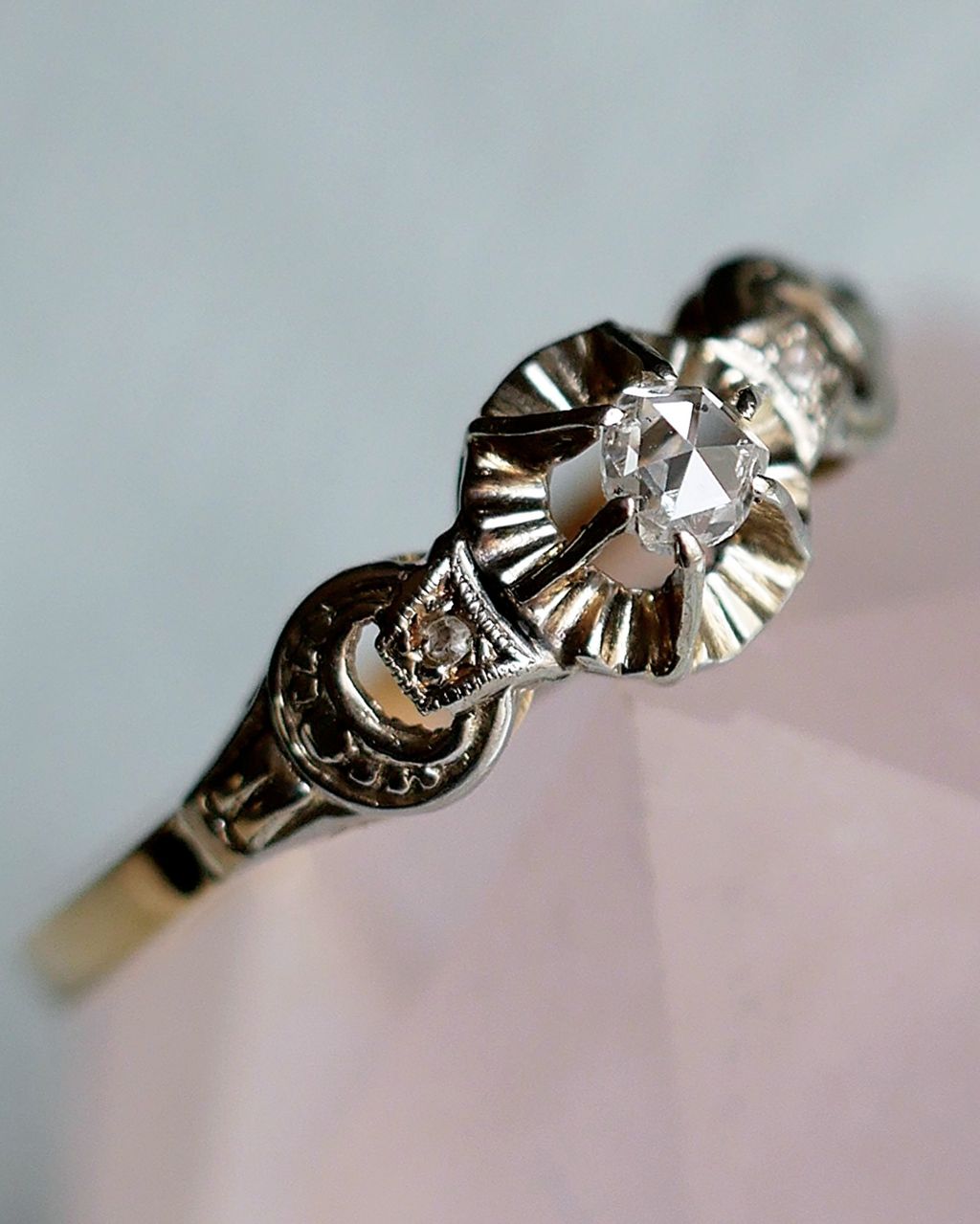 •  -起源於西元1400's年的玫瑰切割方式,是鑽石最初期的手工切割方式之一,靈感來自於花蕾中螺旋狀的花瓣,不同於現代圓形明亮式切割所呈現的繁密閃爍,玫瑰切鑽是以性感的微光和溫柔月光而聞名
