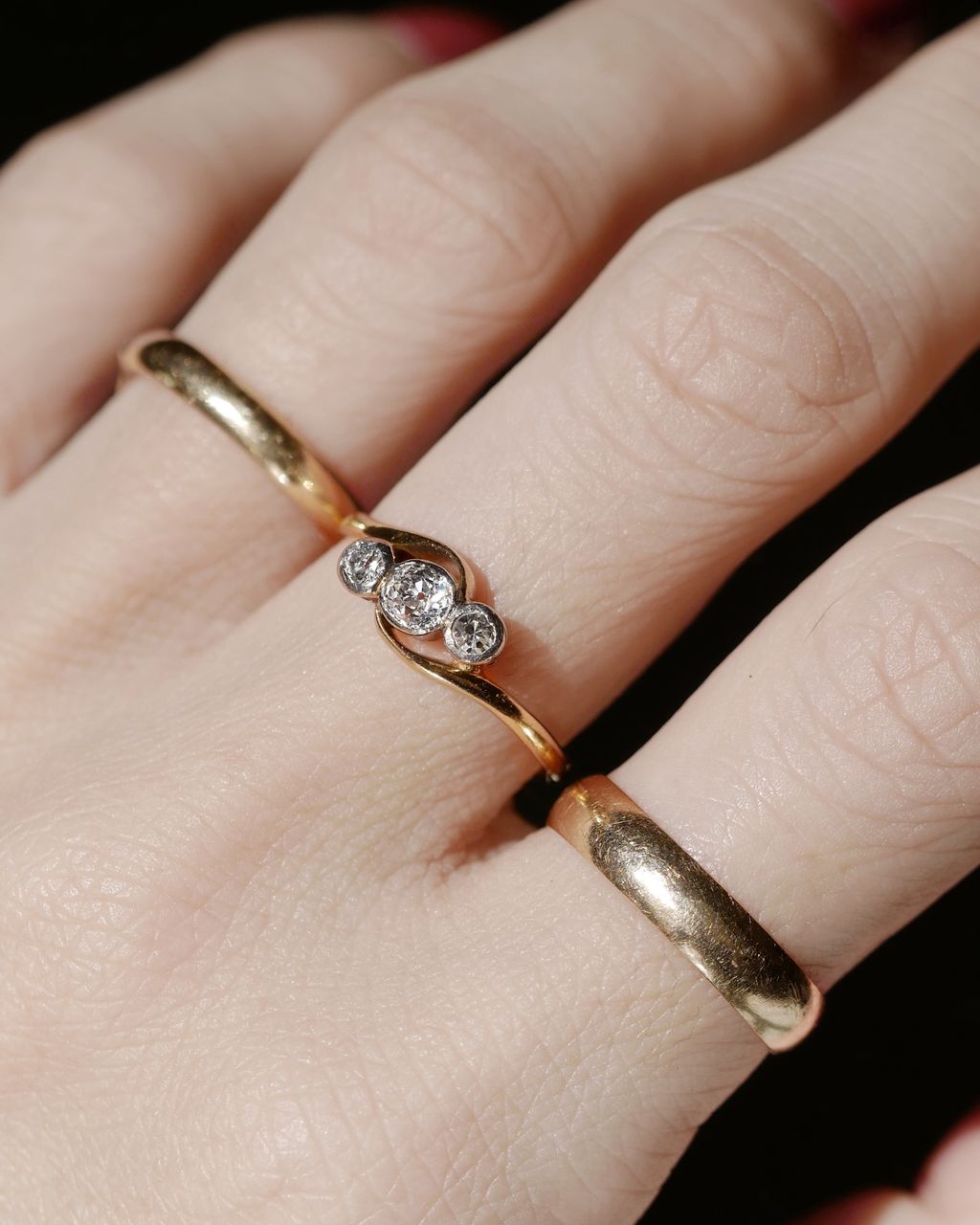 - 戒型:Trilogy ring三部曲戒(三顆寶石分別象徵「過去、現在、未來」)