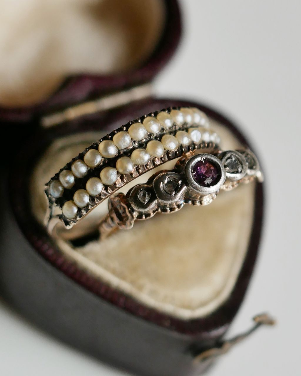 • 在喬治亞時代早期,銀被廣泛使用。尤其偏愛使用銀鑲嵌鑽石,以增加鑽石的光澤感,此外,金匠們也非常喜愛將寶石封閉鑲嵌在金屬上,成為此時期珠寶的一大特色