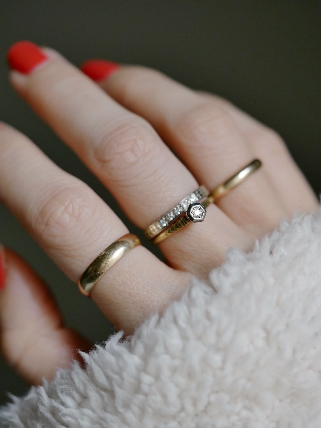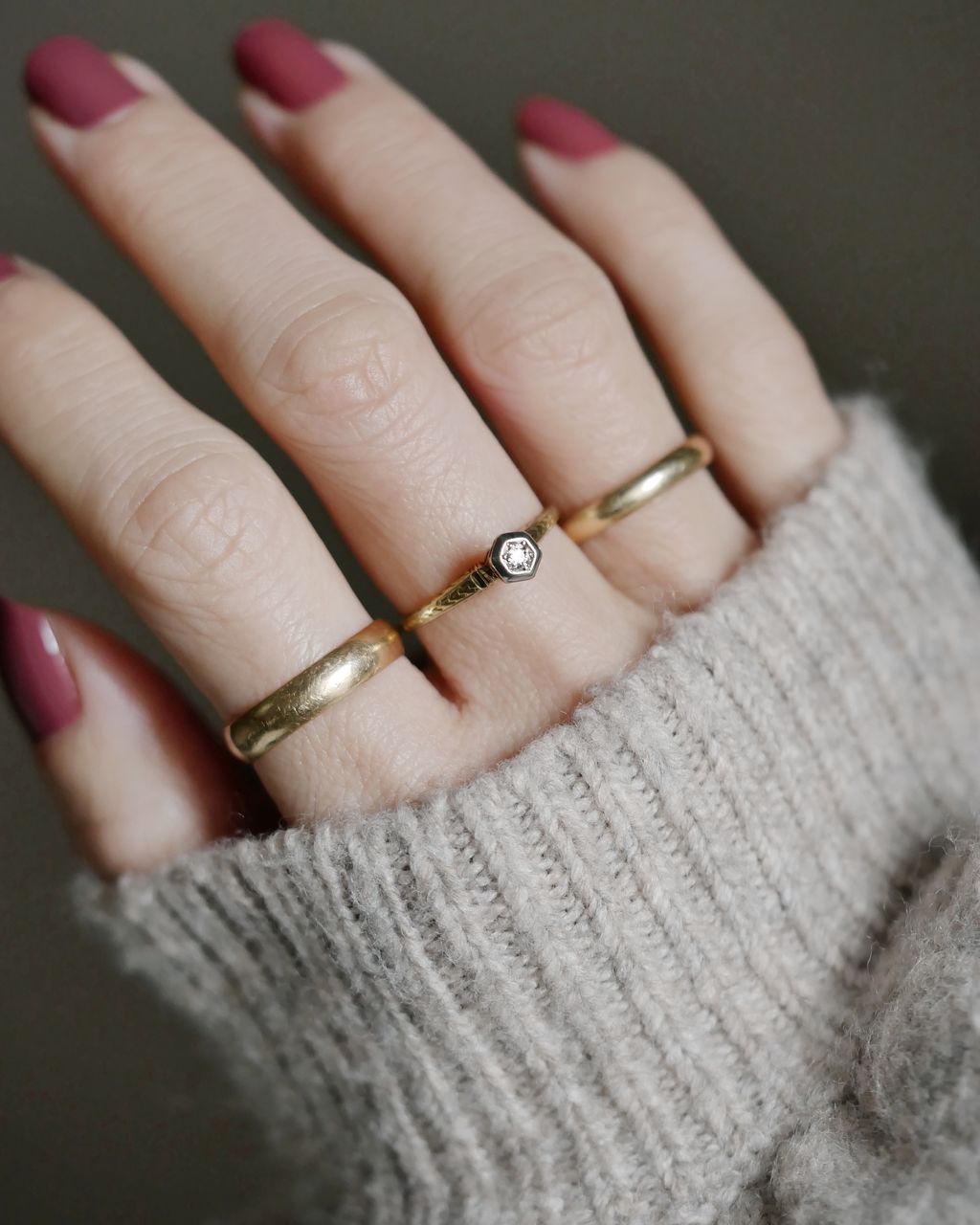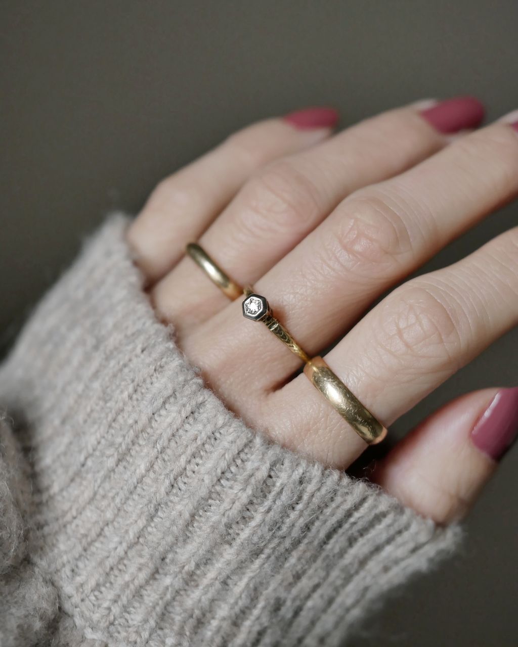 - ※ 建議參考平常合手戒指的內圍直徑作依據,一般來說寬版戒會比平常線戒要拿大半號~1號,而夏天手指會比冬天腫,慣用手指也會比非慣用手指粗,若骨節較粗的朋友,也請將此因素作為挑選尺寸時的考慮要素