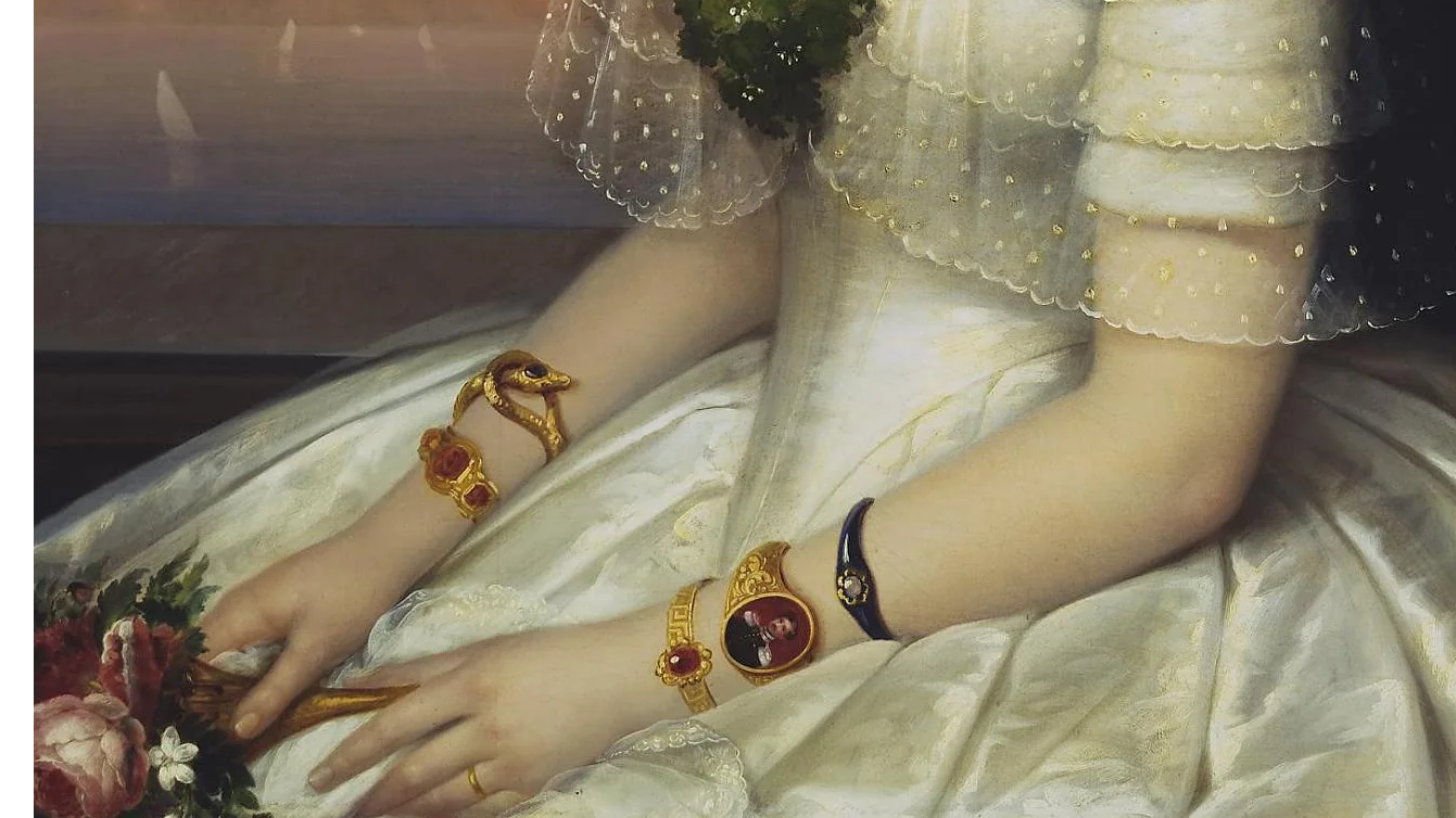 🔸中期(1861-1880):1861年,維多利亞女王的母親和丈夫相繼去世,女王悲痛萬分,處於哀悼期的第一年,女王只著黑色衣服佩戴黑色的珠寶,也因此意外引領一股黑色珠寶潮流,直到1887年後,哀悼首飾的風潮才漸漸消失。有趣的是,在哀悼珠寶流行的同時,由復興主義引領的古典奢侈珠寶也深受民眾喜愛,精緻的馬賽克和金絲工藝被運用到了珠寶設計中,一件件既復古又摩登的首飾成為了當時的經典之作。