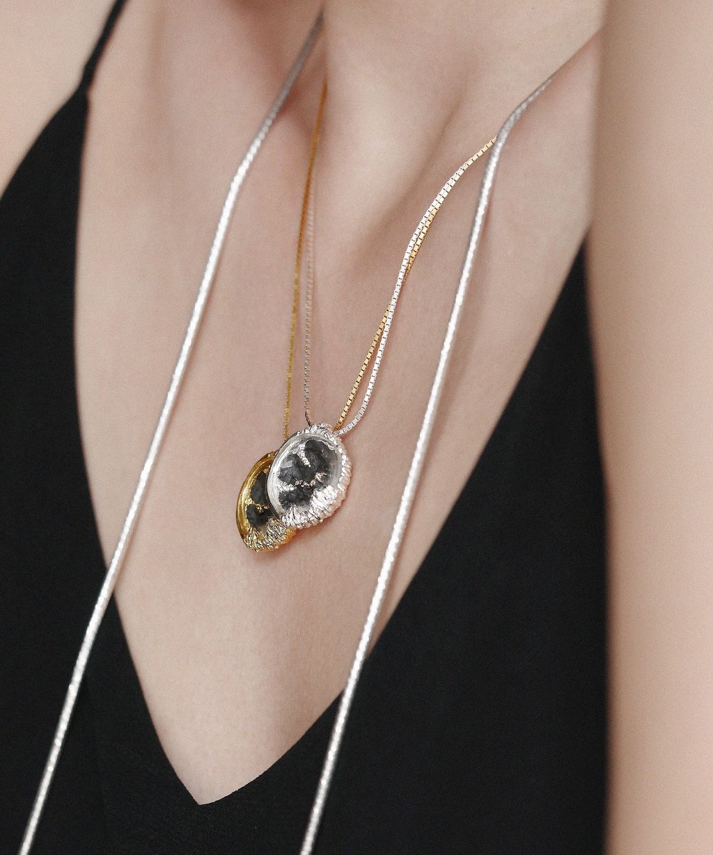 純銀材質會隨著時間 / 環境 / 使用習慣等因素,產生自然的色澤變化