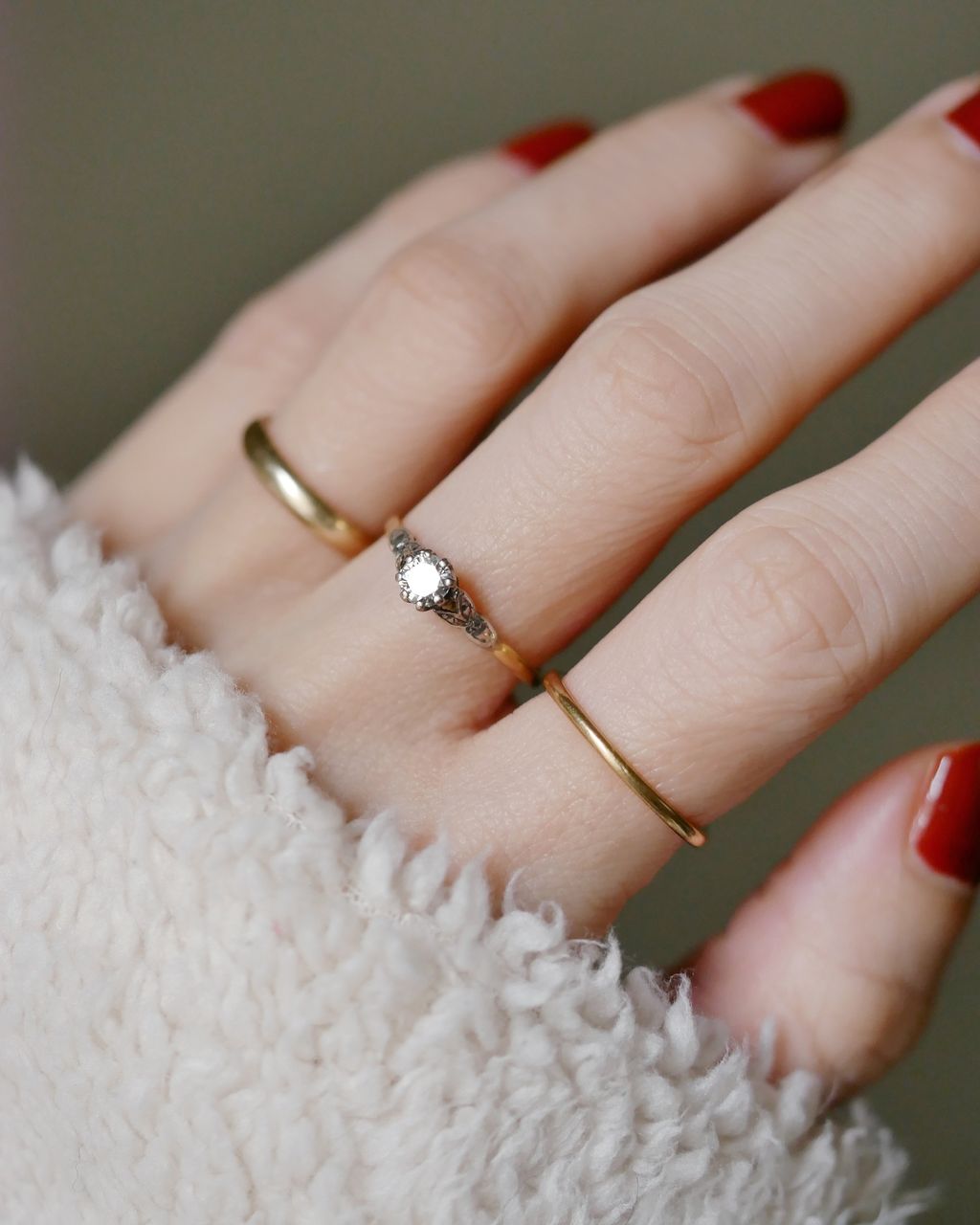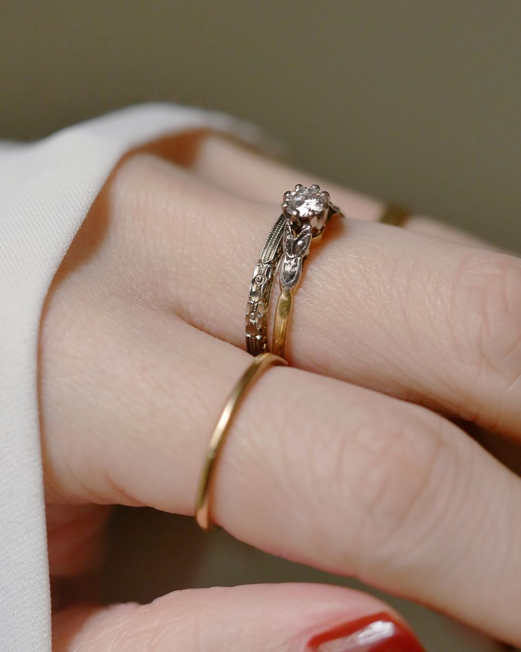• 建議參考平常合手戒指的內圍直徑作依據,一般來說寬版戒會比平常線戒要拿大半號~1號,而夏天手指會比冬天腫,慣用手指也會比非慣用手指粗,若骨節較粗的朋友,也請將此因素作為挑選尺寸時的考慮要素
