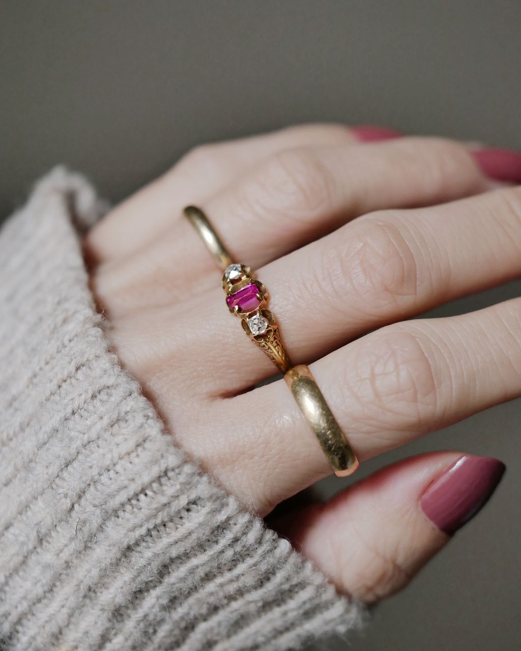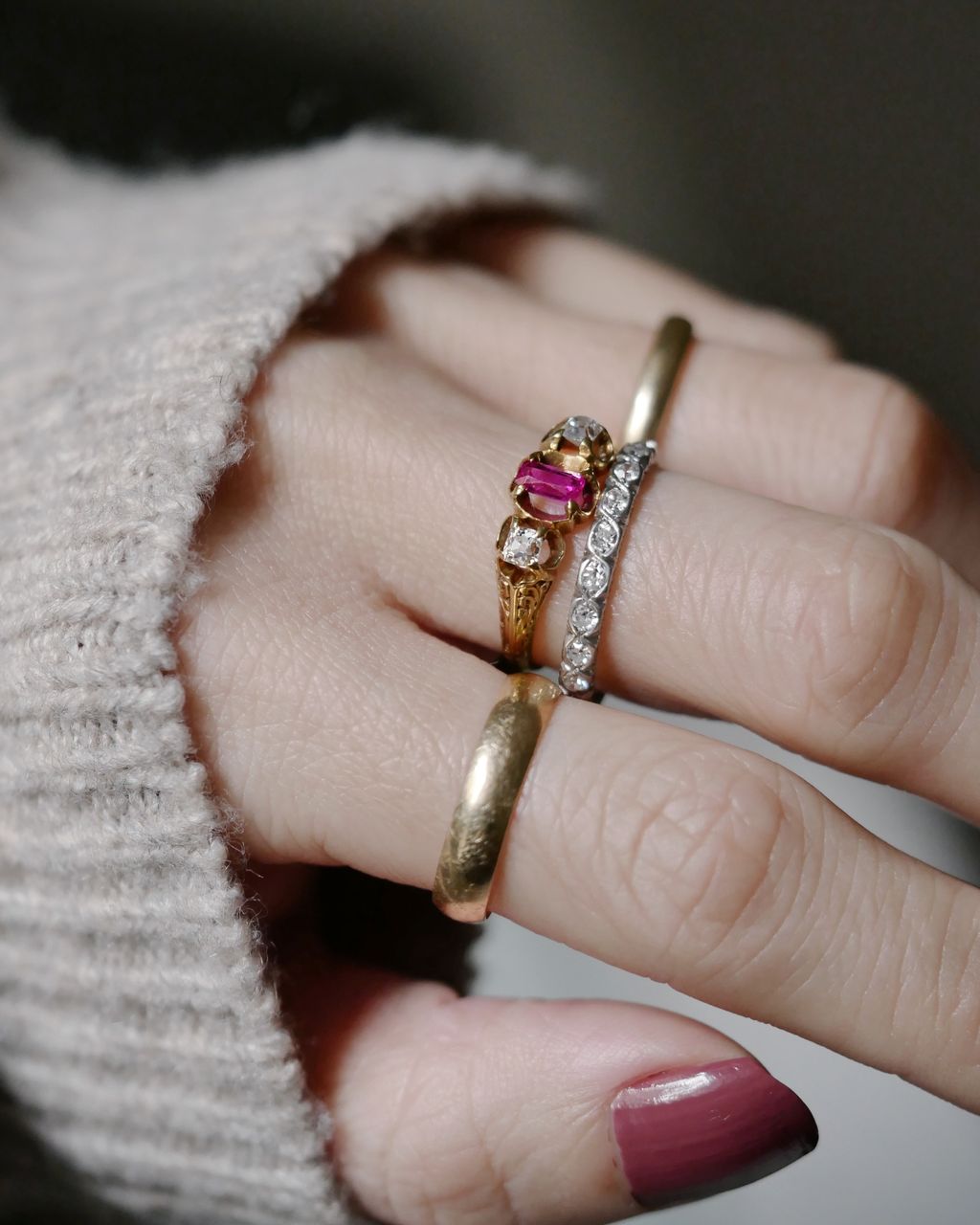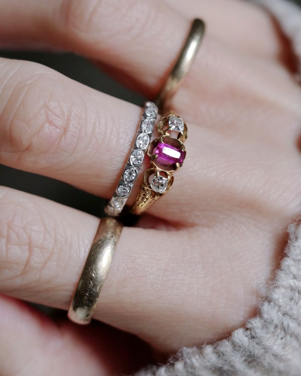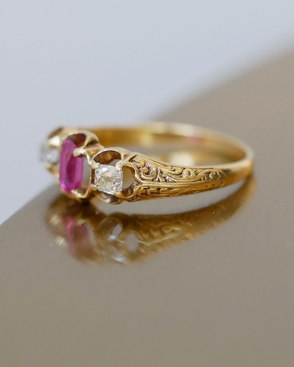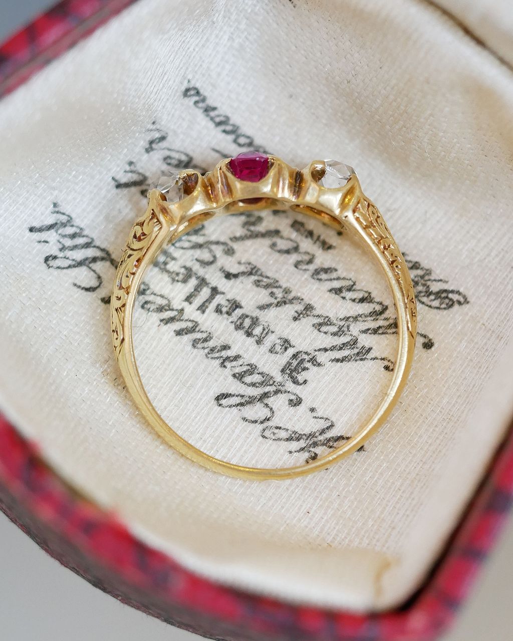 - - 礦石完整、雙側鑽石良好、僅主石細微歲月痕跡